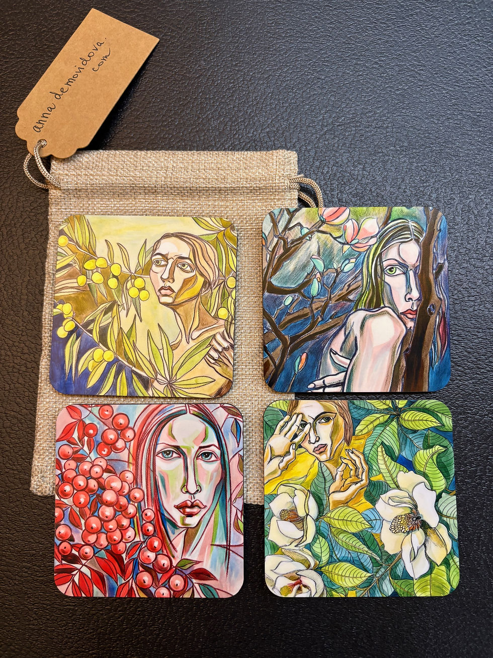 These are my smaller, original artworks — unique pieces I don’t usually show in galleries, but I love making them. They’re priced to find a home. You’ll also find a few gifts here, like photo coasters printed with my favorite artworks and greeting cards.